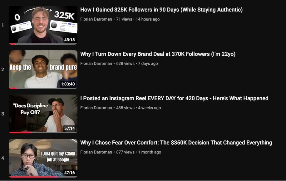 Every week, I interview a content creator that went from 0 to hundreds of thousands of followers by documenting his journey through daily video.